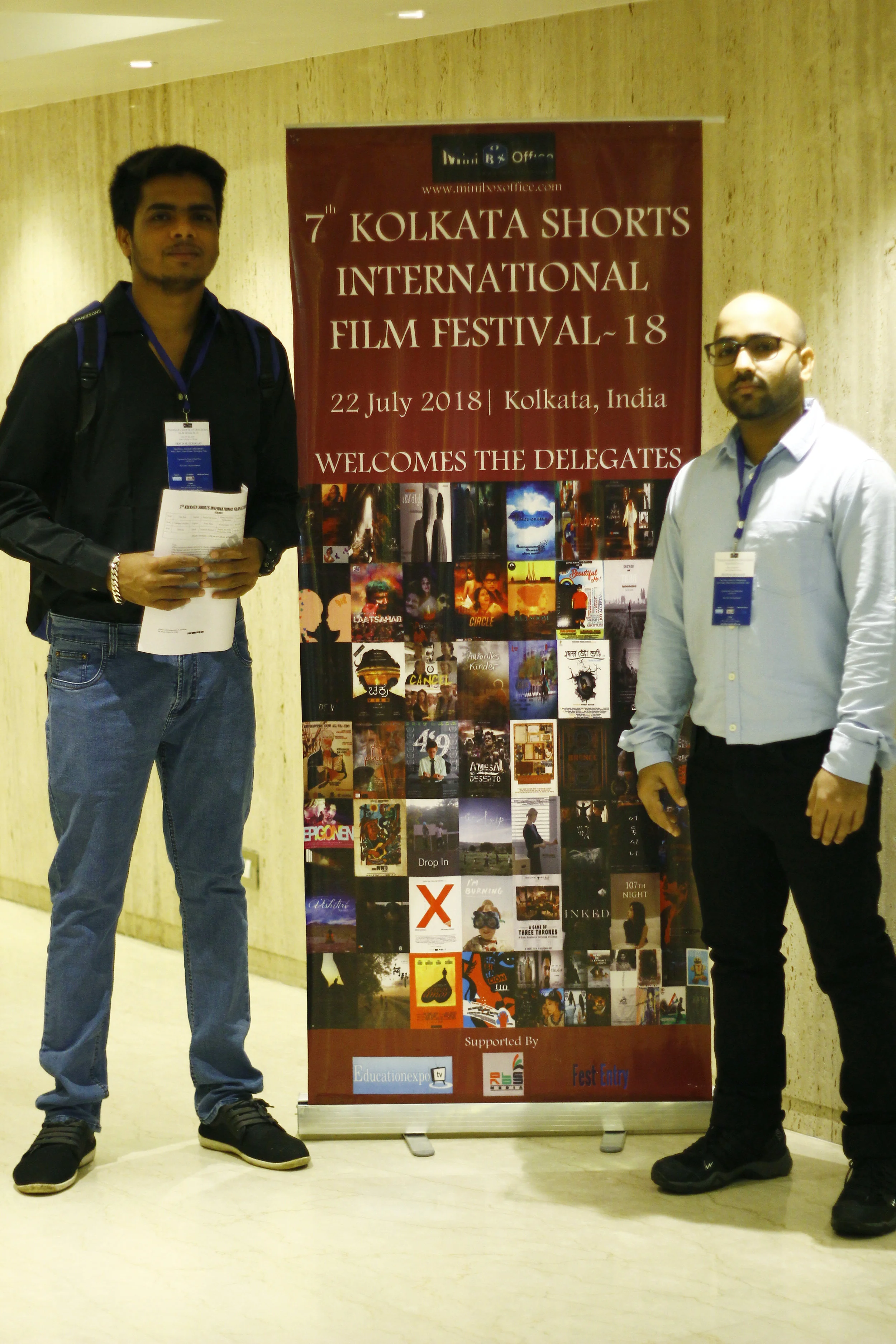 Our Media Executives Rupesh Sahu (left) & Santosh Panigrahi (right) next to the official banner at the festival.